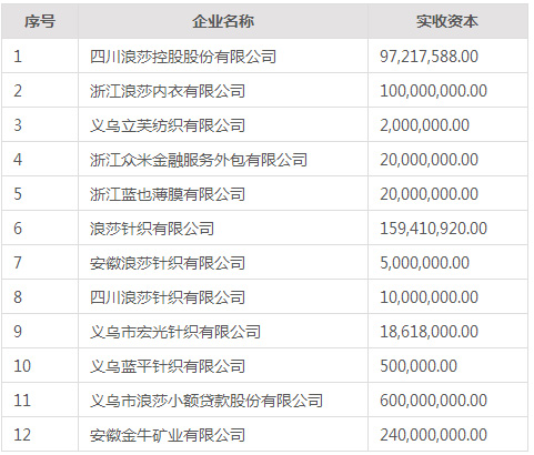 浪莎控股集團(tuán)有限公司子公司及參股公司情況: