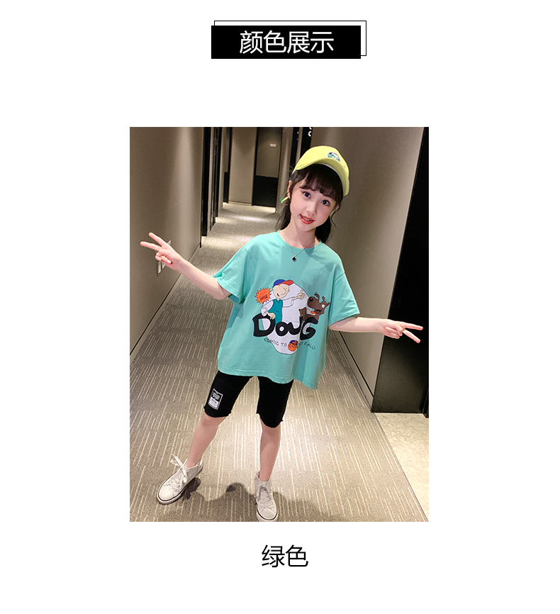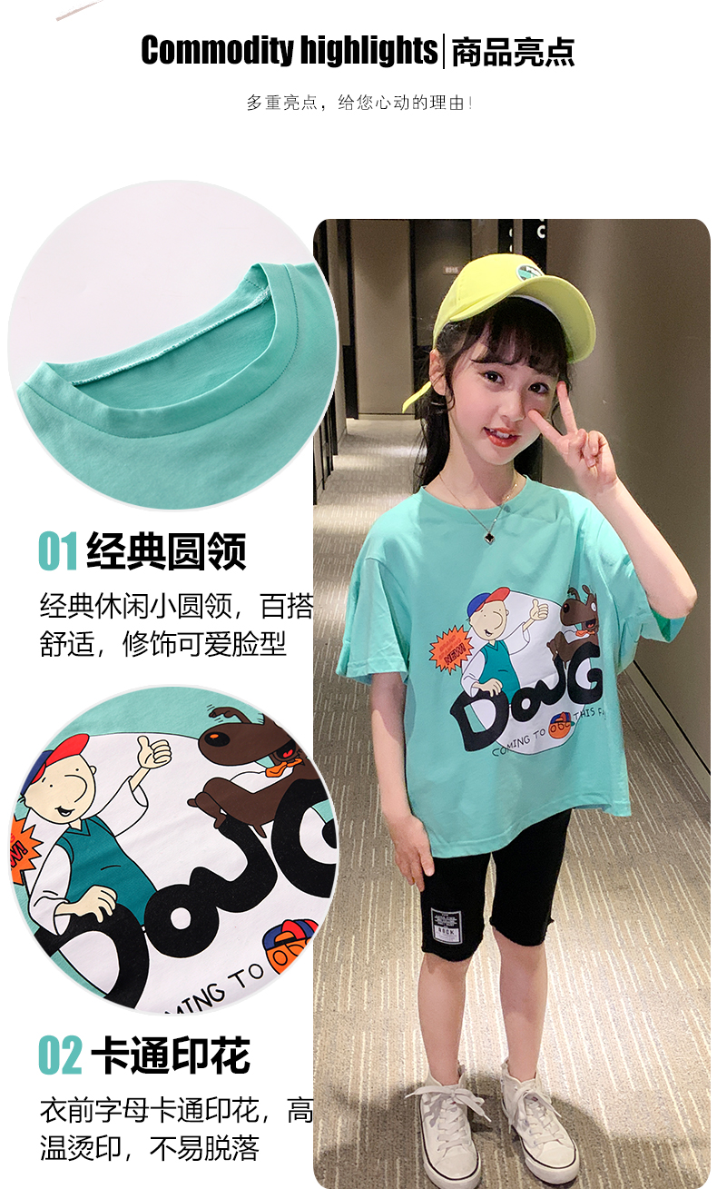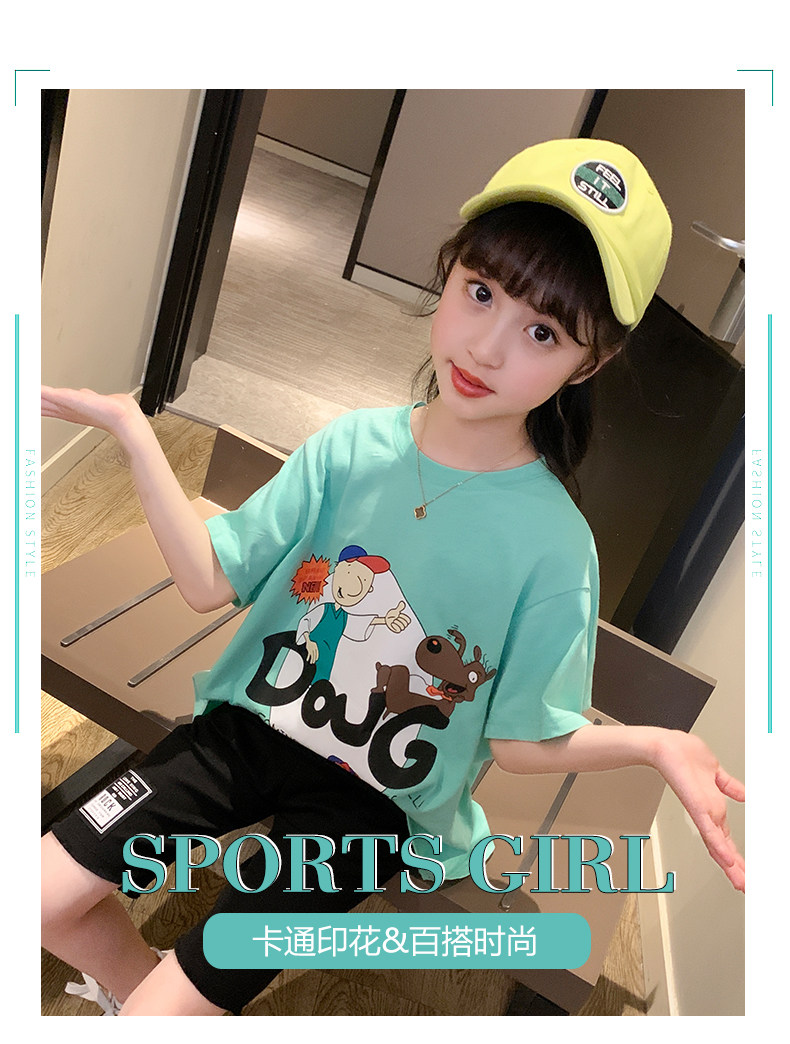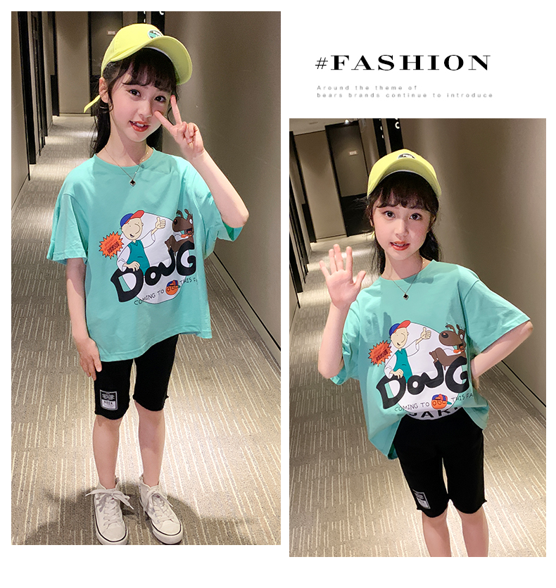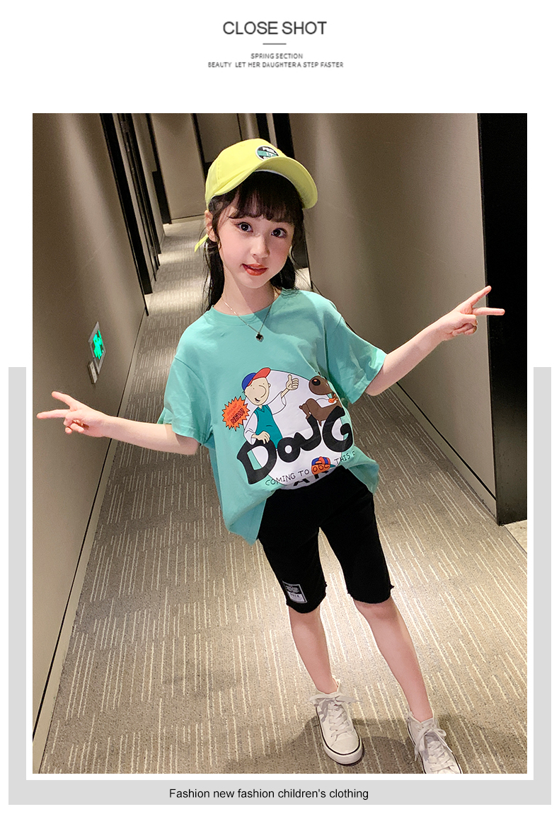 浪莎女童夏裝2021新款網(wǎng)紅洋氣兒童中大童短袖T恤女孩童裝夏季潮