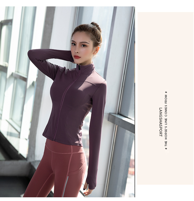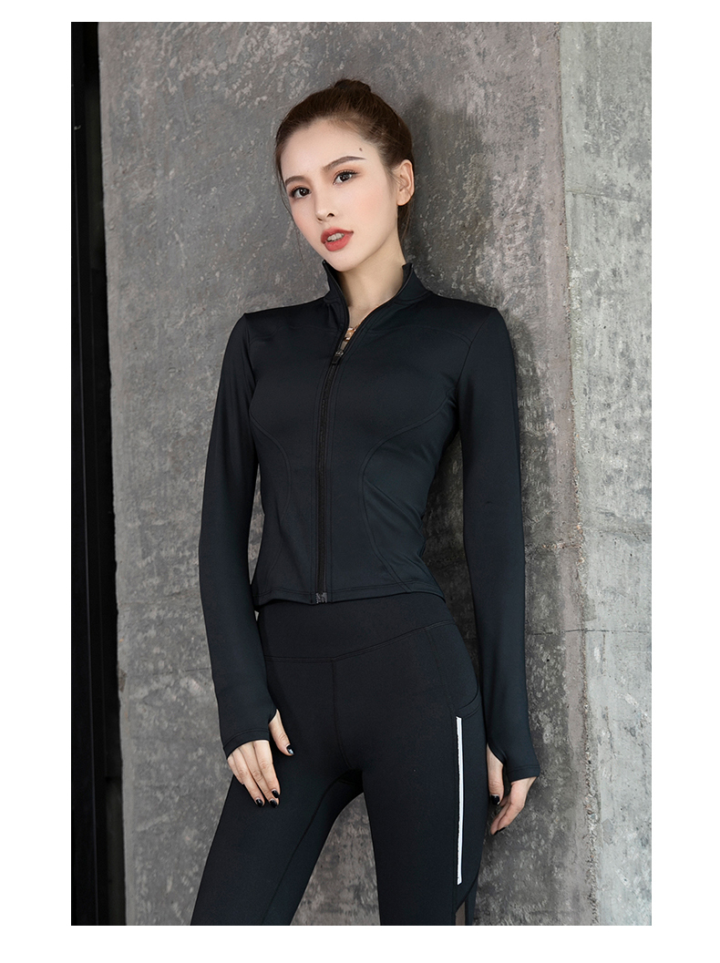 浪莎健身衣女緊身跑步速干拉鏈秋冬戶外立領(lǐng)黑色瑜伽長(zhǎng)袖運(yùn)動(dòng)外套