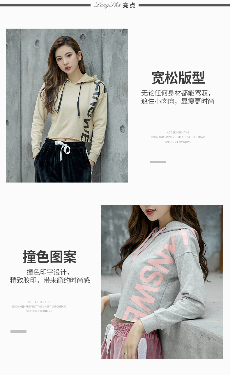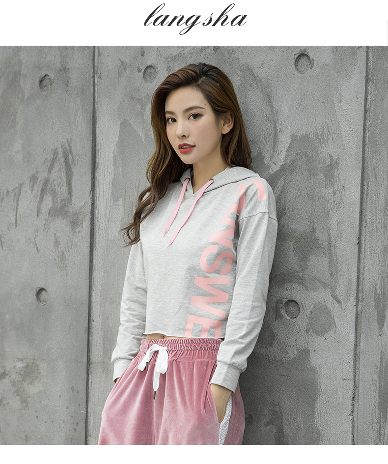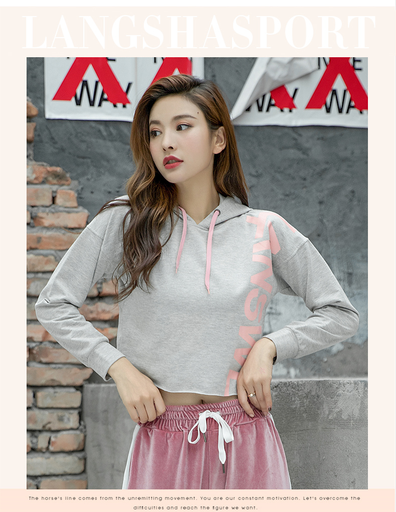 特價(jià)浪莎運(yùn)動(dòng)衛(wèi)衣女寬松連帽休閑純棉套頭衫春秋瑜伽服健身長(zhǎng)袖