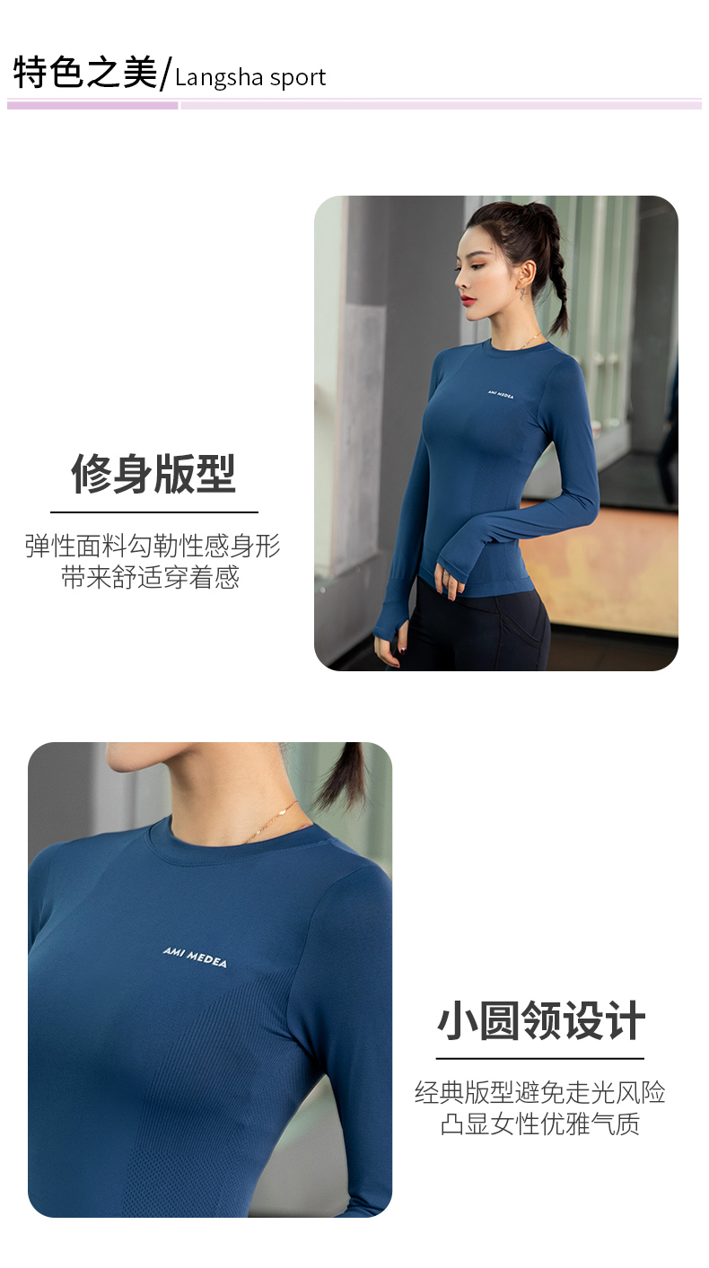 浪莎運(yùn)動(dòng)上衣女修身瑜伽服跑步秋冬吸汗緊身透氣速干新款健身長袖