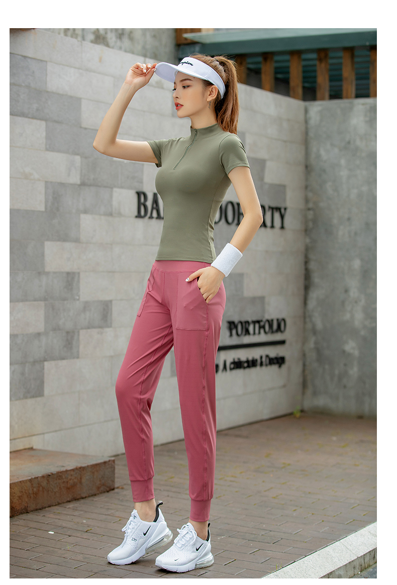 浪莎運動短袖女速干透氣緊身夏季性感V領瑜伽健身服跑步上衣T恤