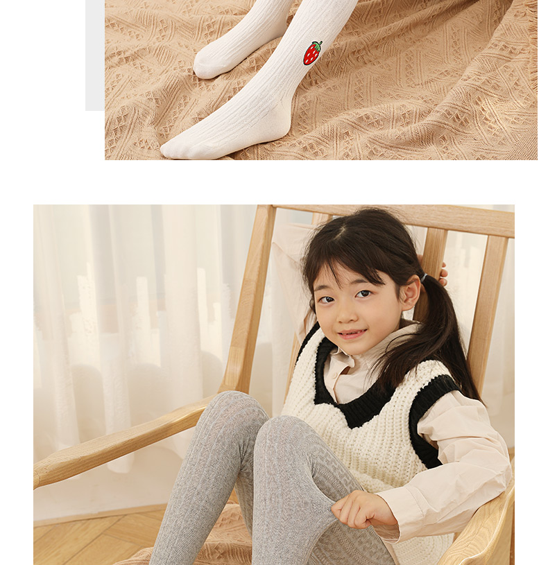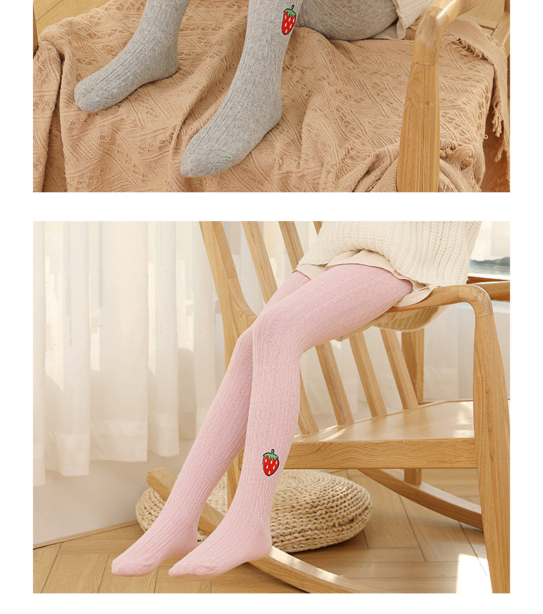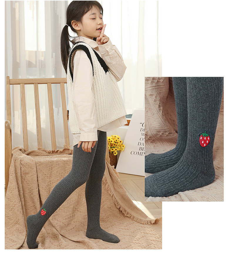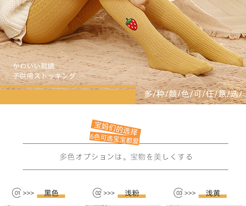 浪莎兒童連褲襪秋冬季女童刺繡草莓打底襪寶寶糖果色麻花條紋襪子